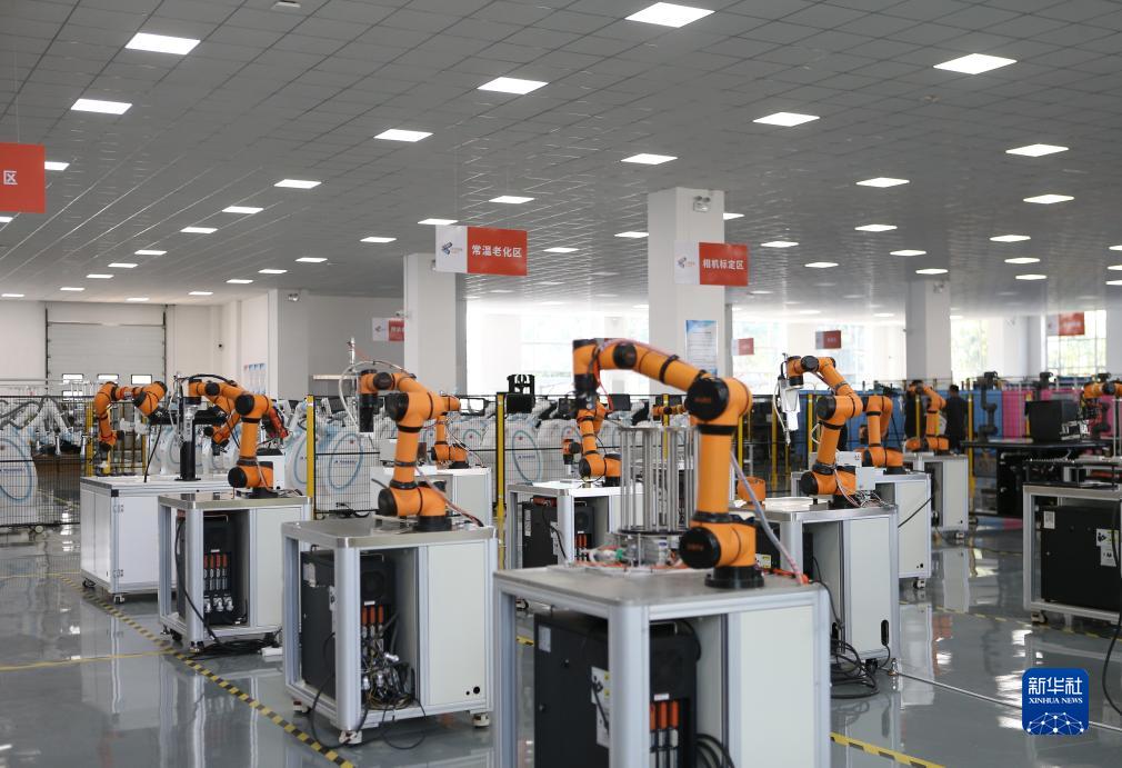 這是7月25日在遨博(山東)智能機器人有限公司拍攝的協(xié)作機器人。