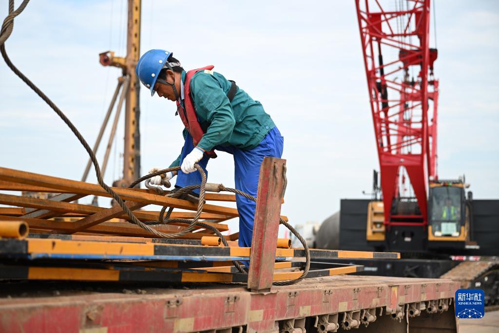 7月26日,中鐵大橋局施工人員在池州長(cháng)江公鐵大橋南岸主墩鉆孔樁施工現場(chǎng)作業(yè)。