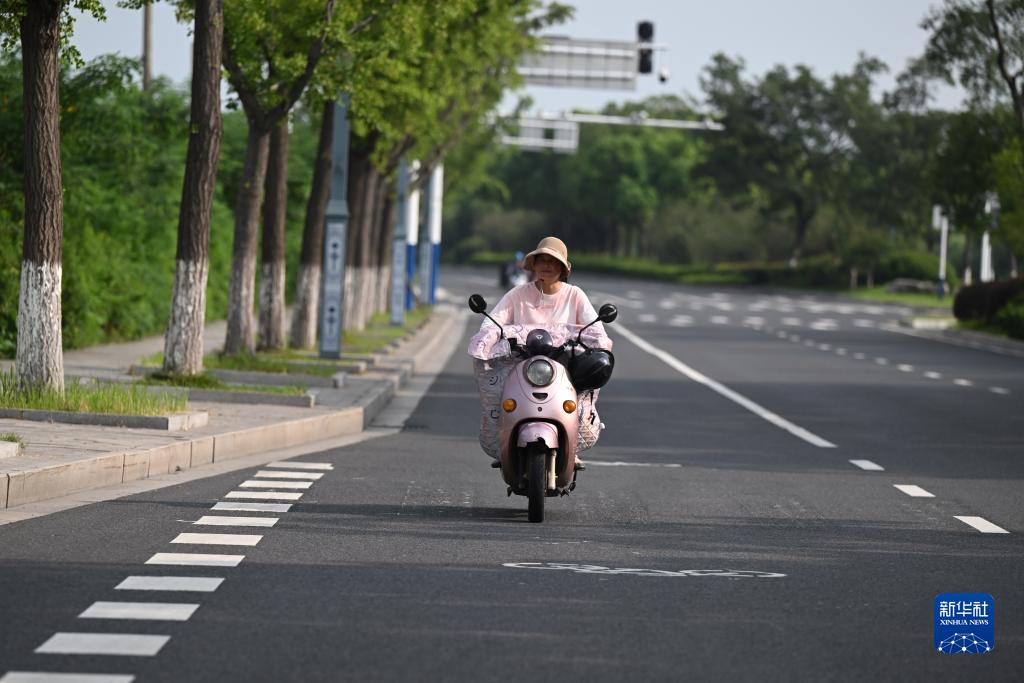 7月24日,陳蘭香騎車(chē)前往三姑娘勞務(wù)服務(wù)有限公司一處勞務(wù)項目地點(diǎn)。新華社記者 周牧 攝