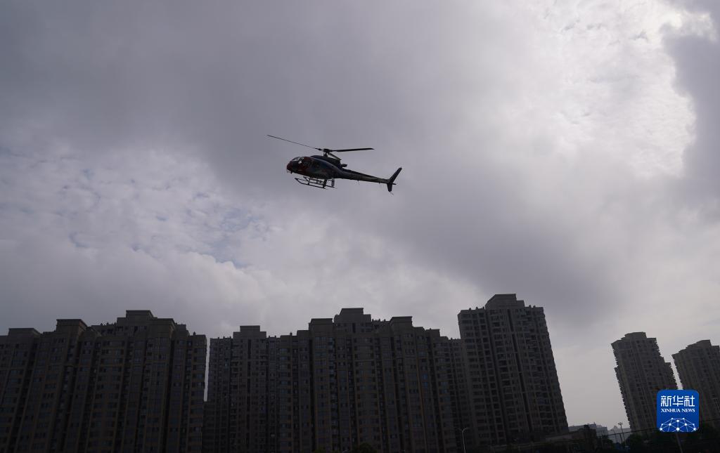 7月26日,直升機在吉安市區上空飛行。