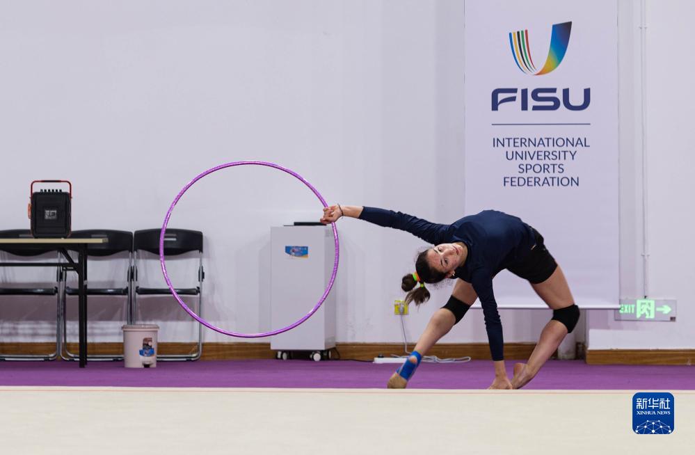 7月25日,芬蘭大學(xué)生藝術(shù)體操隊的選手在成都體育學(xué)院體操館訓練。