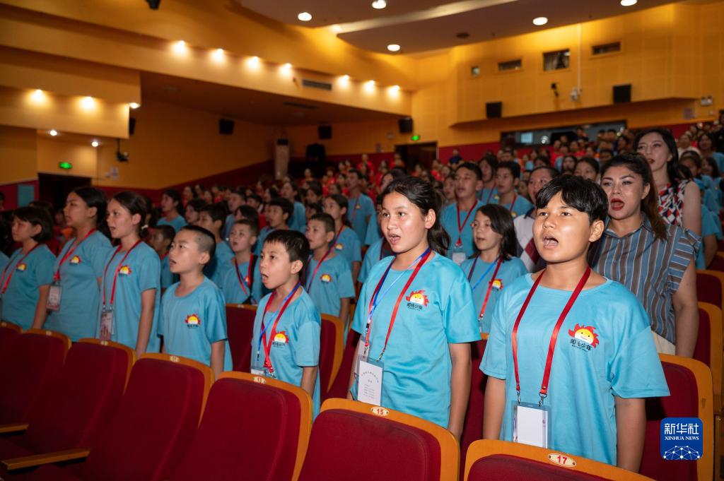 7月26日,在2023年陽(yáng)光少年工會(huì )夏令營(yíng)開(kāi)營(yíng)儀式上,營(yíng)員們齊唱國歌。