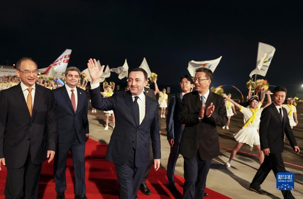 7月26日晚,來(lái)華出席成都大運會(huì )開(kāi)幕式并訪(fǎng)問(wèn)的格魯吉亞總理加里巴什維利抵達四川省成都市。新華社記者 江宏景 攝