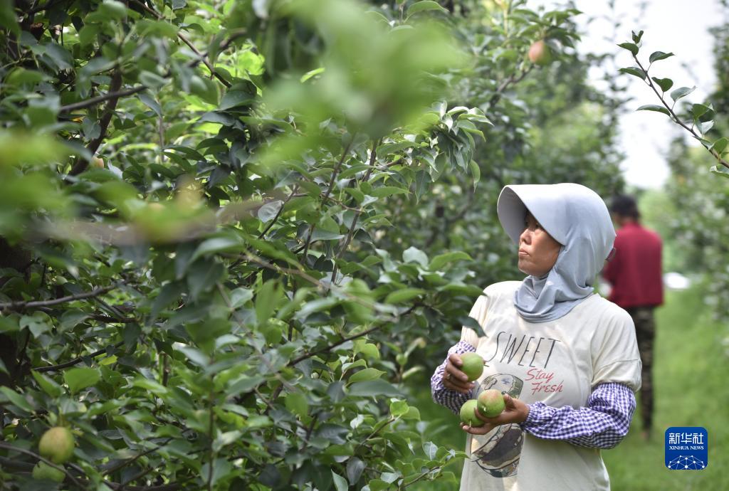 7月27日,河北省威縣張營(yíng)鄉前花疃村果農在梨園采摘梨果。