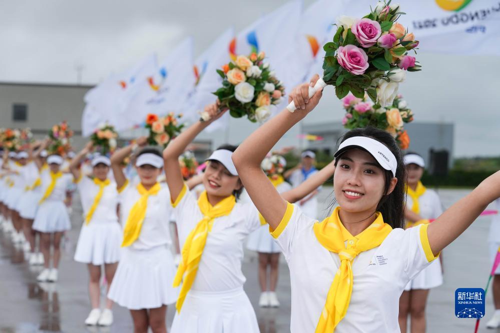7月27日下午,來(lái)華出席成都大運會(huì )開(kāi)幕式并訪(fǎng)問(wèn)的圭亞那總統阿里抵達四川省成都市。這是歡迎儀式現場(chǎng)。