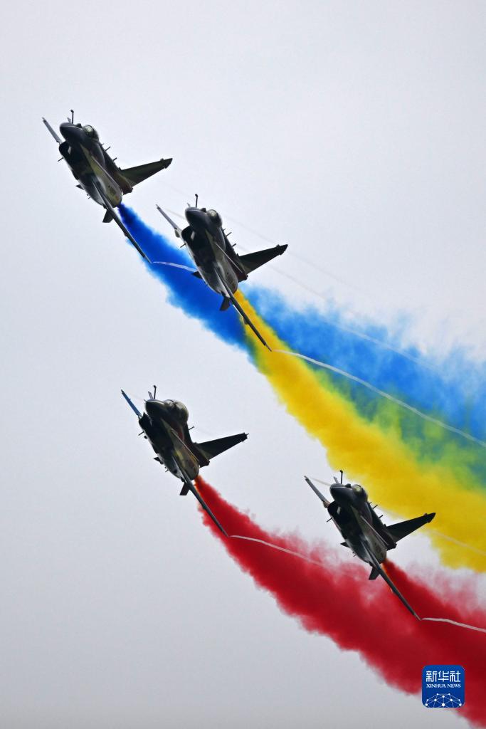 7月27日,在空軍航空開(kāi)放活動(dòng)·長(cháng)春航空展首個(gè)公眾日,空軍八一飛行表演隊選用紅、黃、藍三色拉煙紀念抗美援朝戰爭勝利70周年。