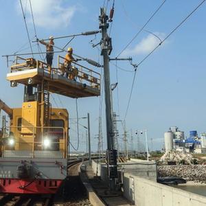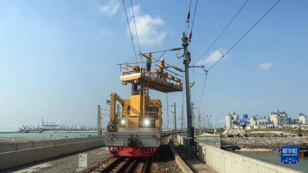 近日,國鐵南寧局沿海鐵路公司欽州供電段的接觸網(wǎng)工加大對管段內接觸網(wǎng)設備的檢修力度,為西部陸海新通道的暑運安全提供保障。
