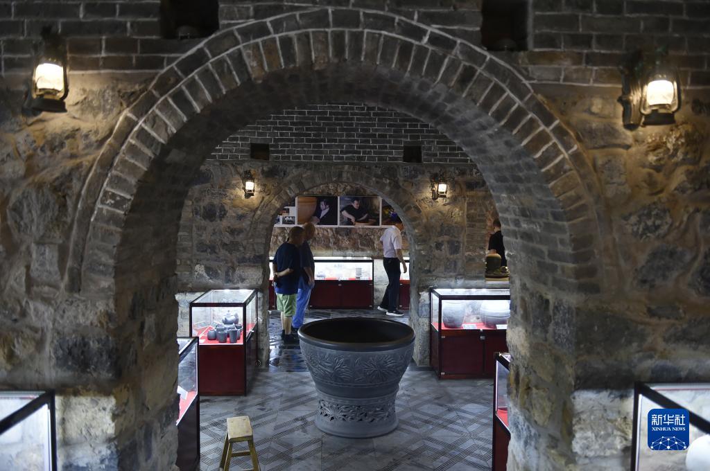 7月27日,來(lái)訪(fǎng)者在盆窯村的黑陶制品展覽館里參觀(guān)。