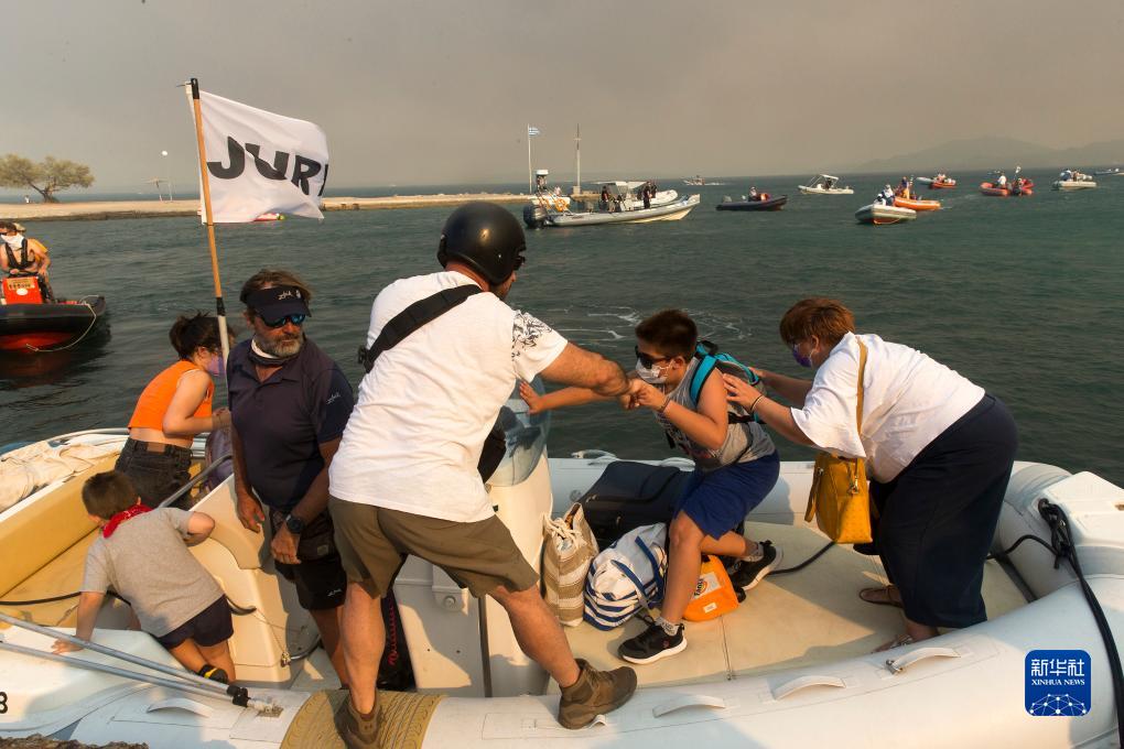 7月27日,人們從受到野火威脅的希臘沃洛斯地區新安希亞洛斯撤離。