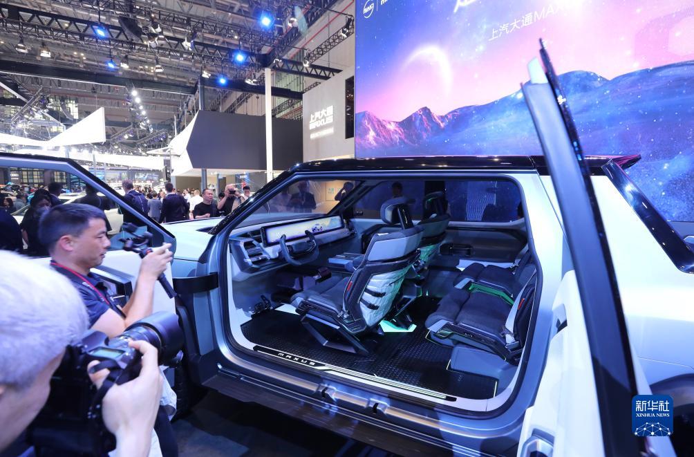 2023年4月18日,參觀(guān)者在第二十屆上海車(chē)展上拍攝上汽大通品牌推出的一款純電皮卡概念車(chē)。