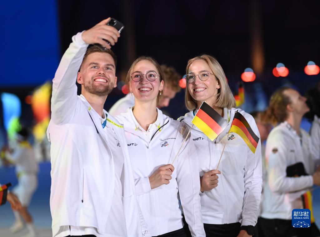 7月28日,德國大學(xué)生體育代表團在開(kāi)幕式上入場(chǎng)。