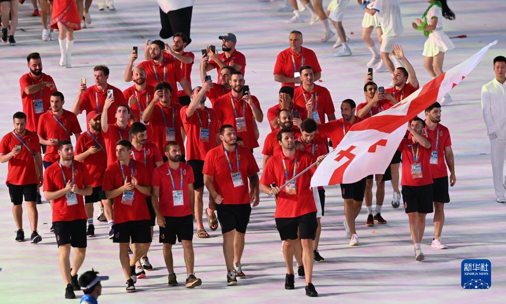 7月28日,格魯吉亞大學(xué)生體育代表團在開(kāi)幕式上入場(chǎng)。
