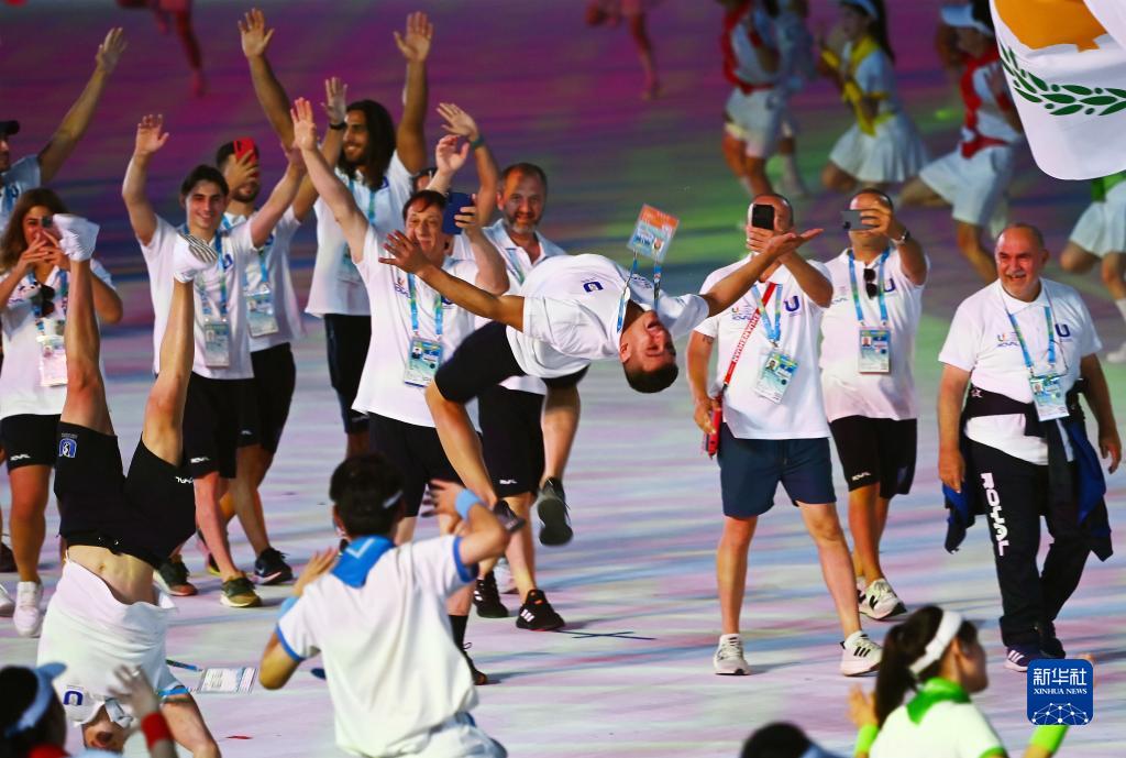 7月28日,塞浦路斯大學(xué)生體育代表團在開(kāi)幕式上入場(chǎng)。