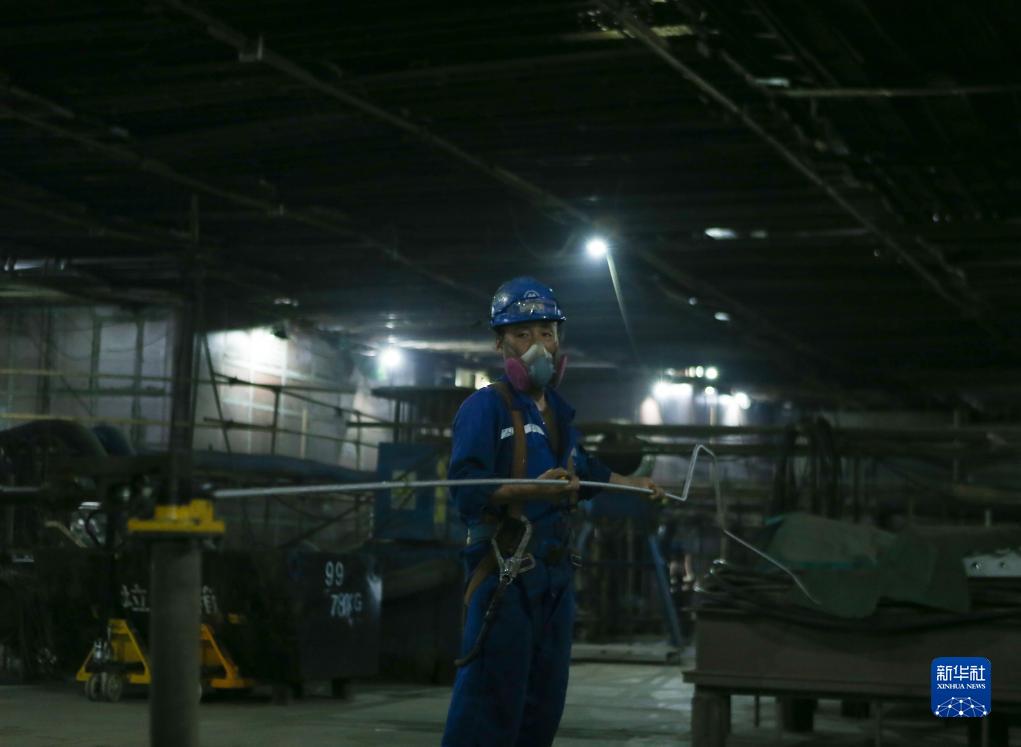7月28日,招商局金陵船舶(威海)有限公司的工人在船體內部作業(yè)。