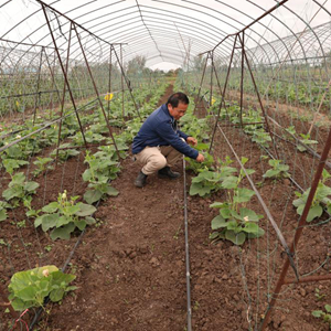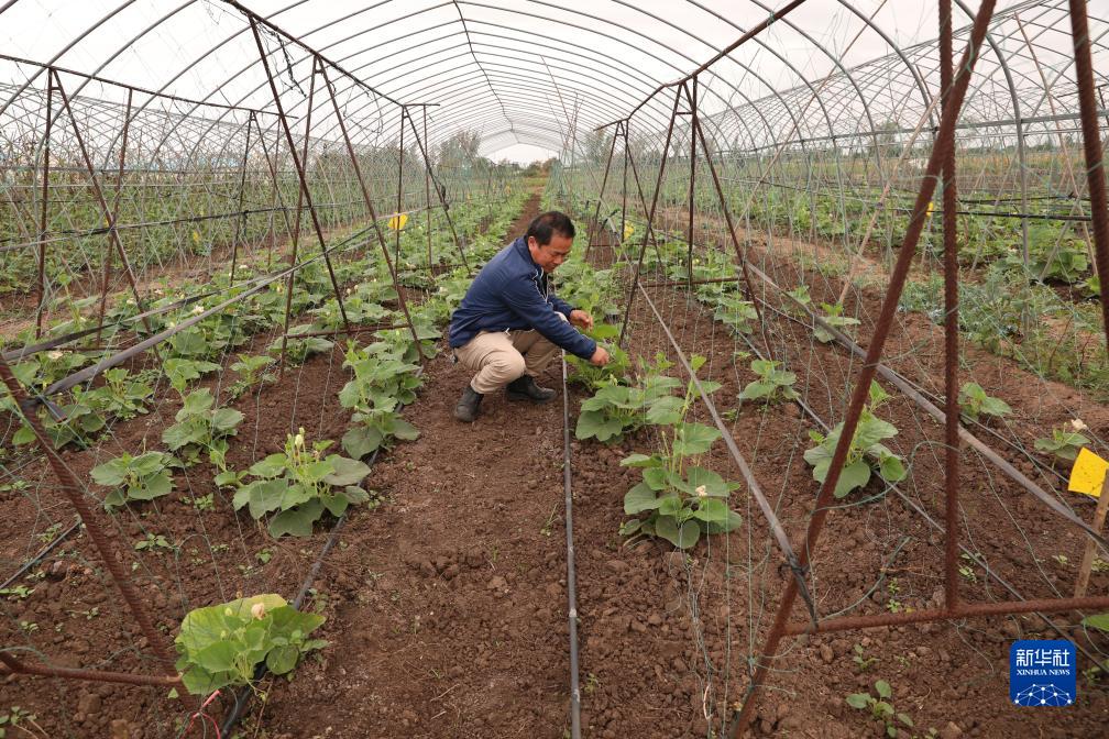 7月25日,在莫桑比克馬普托省博阿內地區,中國技術(shù)員頓新洪在中莫農業(yè)技術(shù)示范中心蔬菜大棚內查看蔬菜。