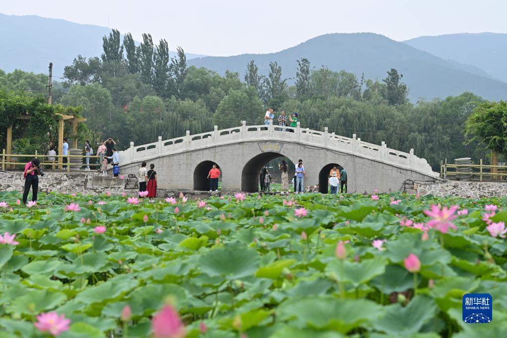 夏日,山西省太原市晉源區北大寺村的荷花競相開(kāi)放,吸引眾多游客前來(lái)觀(guān)賞。
