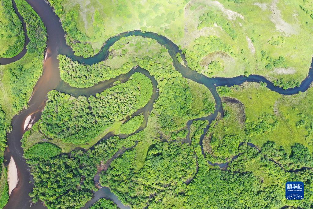 這是7月29日拍攝的免渡河國家濕地公園景色(無(wú)人機照片)。