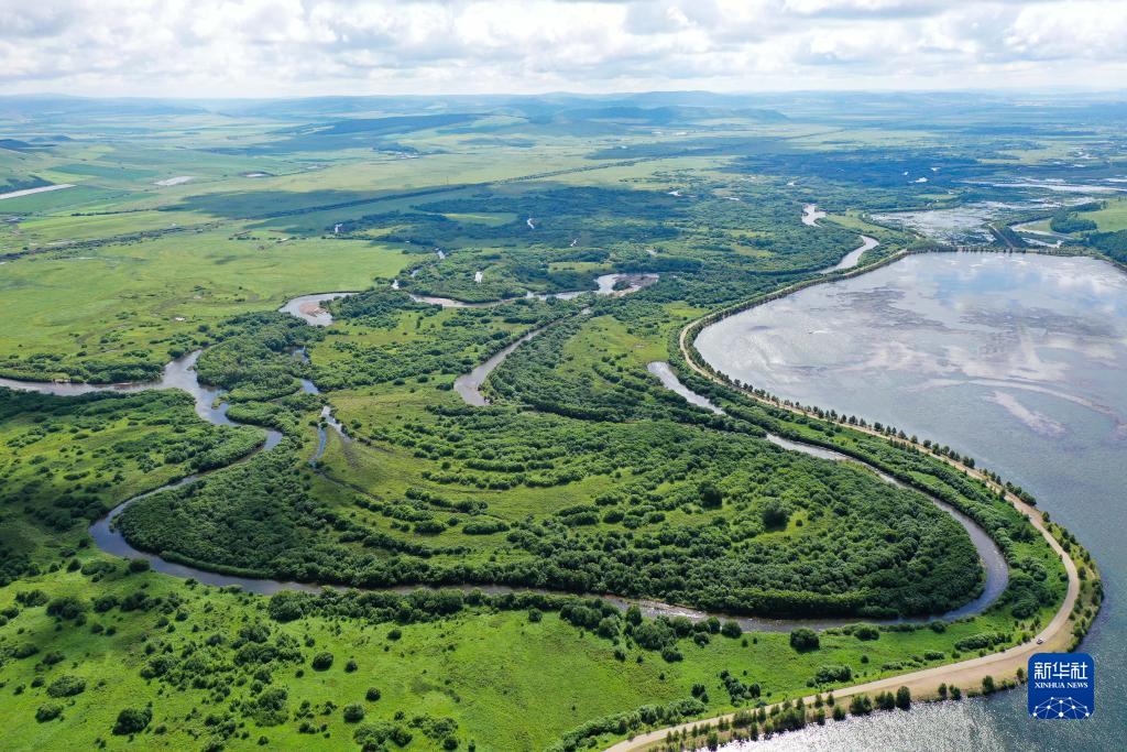夏日時(shí)節,位于內蒙古自治區呼倫貝爾市牙克石市的免渡河國家濕地公園郁郁蔥蔥,景色優(yōu)美。