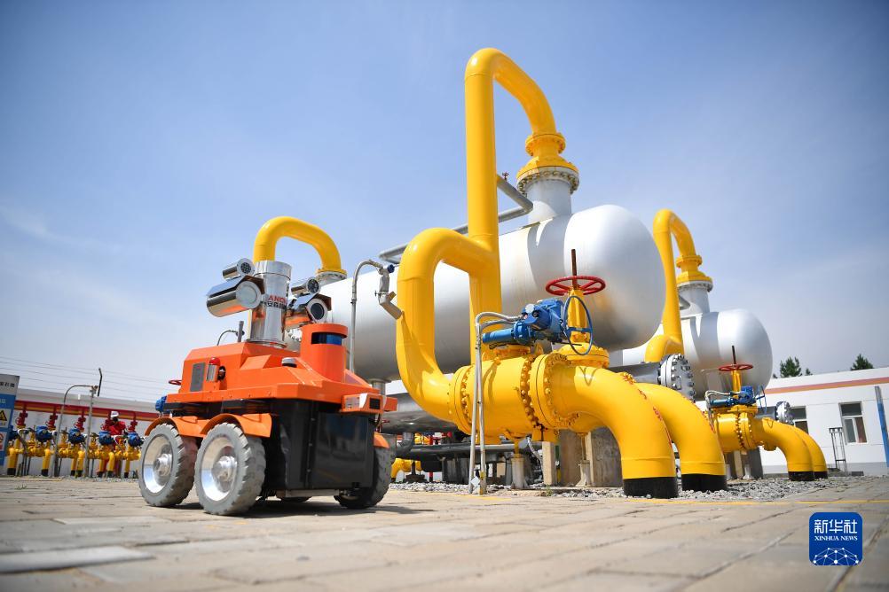 智能巡檢機器人在中國石油長(cháng)慶油田第五采氣廠(chǎng)蘇東—8集氣站進(jìn)行日常巡檢(7月26日攝)。