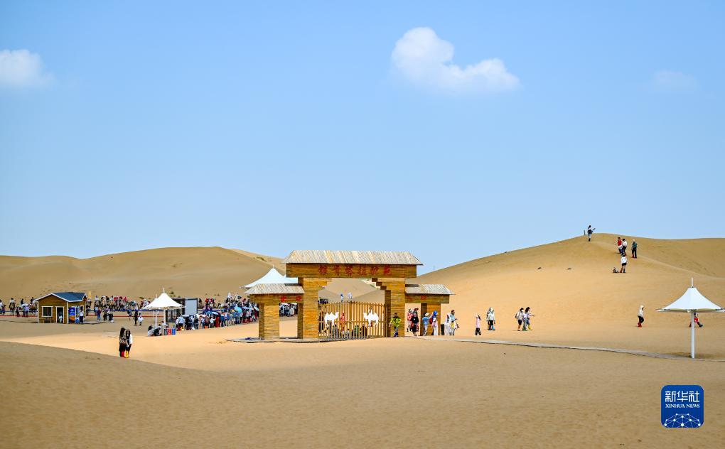 盛夏時(shí)節,內蒙古鄂爾多斯市達拉特旗境內的庫布其沙漠游客絡(luò )繹不絕,沙漠旅游一派火熱。游客們在飽覽大漠美景的同時(shí),也體驗騎駱駝、滑沙等項目的獨特魅力。