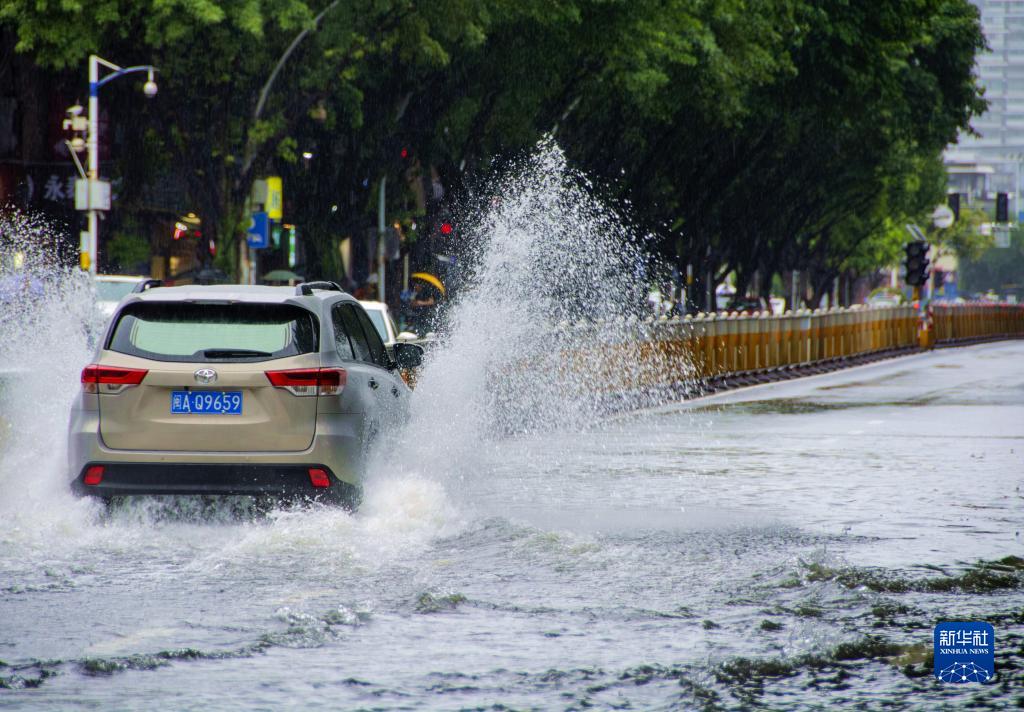7月29日,車(chē)輛駛過(guò)福州市晉安區福新路積水路段。