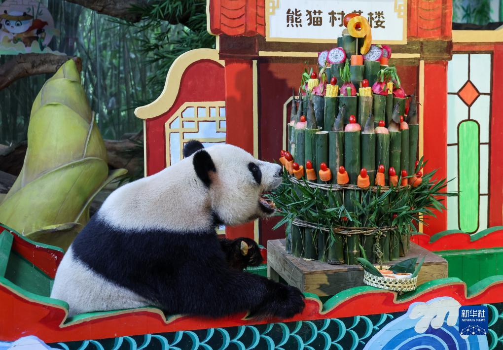 當日,全球唯一的三胞胎大熊貓“萌萌”“帥帥”“酷酷”迎來(lái)九周歲生日,三胞胎于2014年7月29日出生于廣州長(cháng)隆野生動(dòng)物世界華南大熊貓繁育基地。