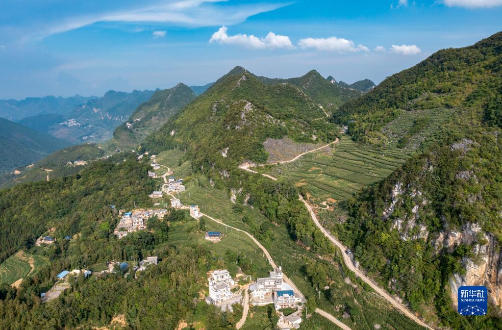 這是無(wú)人機拍攝的西疇縣山間公路,右側這條是巖頭村村民小組長(cháng)李華明帶領(lǐng)群眾修建的最后一公里進(jìn)村道路(無(wú)人機照片,7月26日攝)。新華社記者 陳欣波 攝