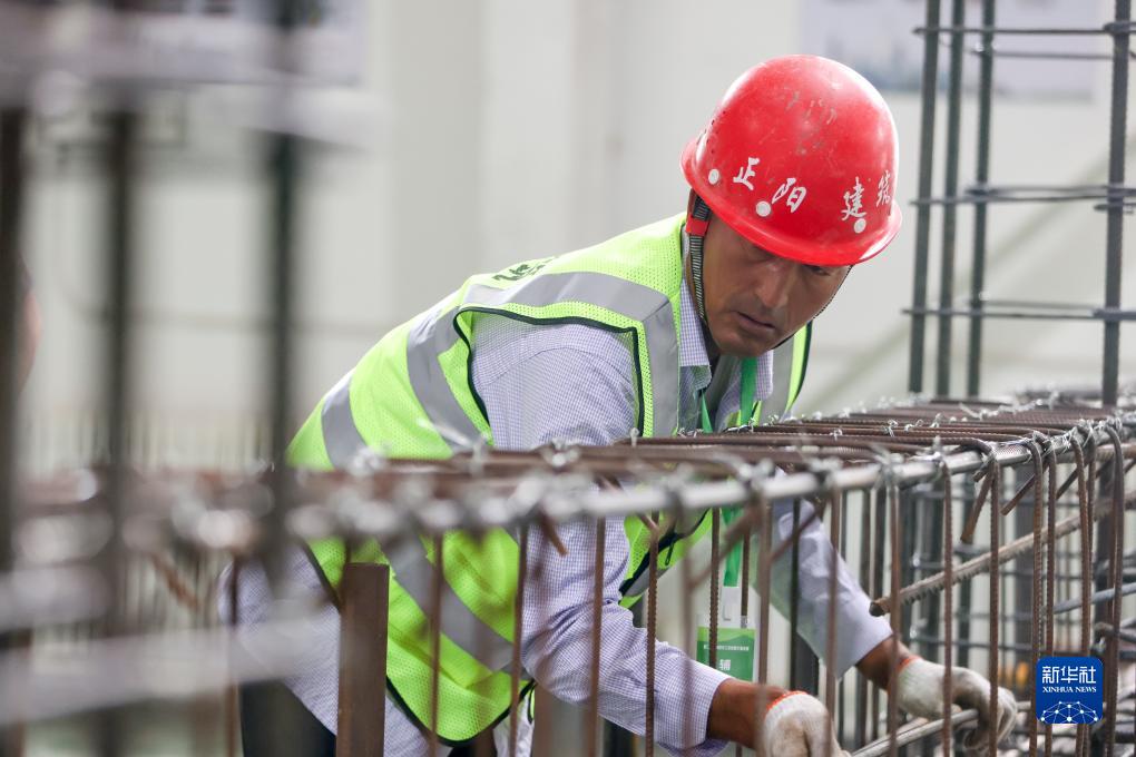 7月29日,在第二屆新疆建筑工匠技能大賽決賽現場(chǎng),參賽選手在進(jìn)行鋼筋工項目競賽。