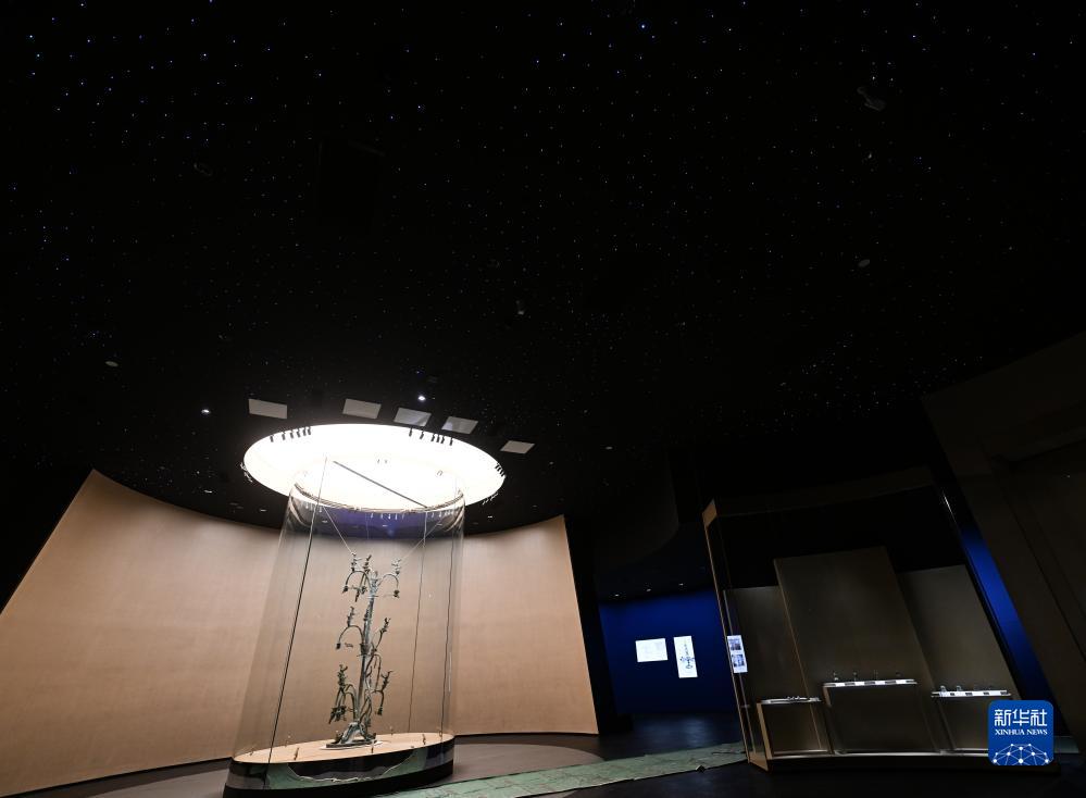 這是7月26日在三星堆博物館新館拍攝的重新展出的Ⅰ號大型銅神樹(shù)。