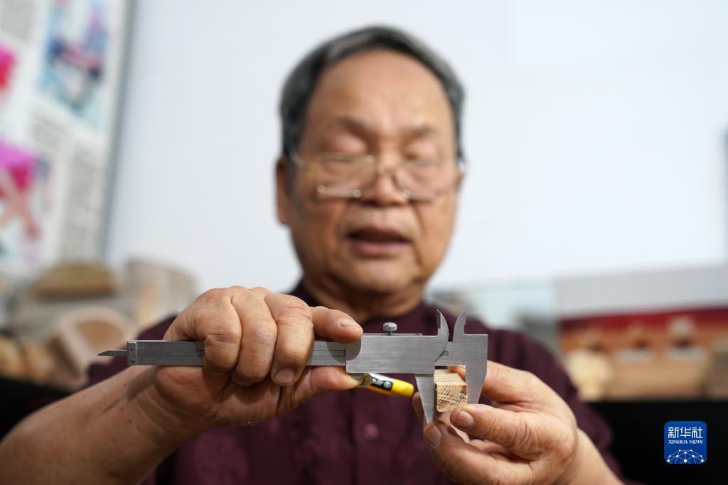 7月30日,侯全辰在工作間內制作孔明鎖。