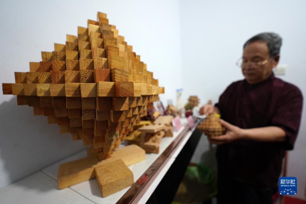 7月30日,侯全辰在整理他制作的各類(lèi)孔明鎖。