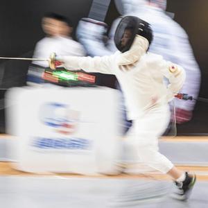 7月30日,在浙江省湖州奧體中心超越擊劍館,小朋友在練習擊劍攻防技巧。