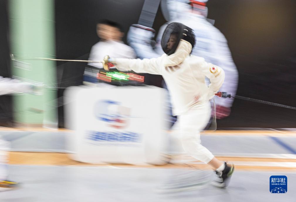 7月30日,在浙江省湖州奧體中心超越擊劍館,小朋友在進(jìn)行擊劍訓練。