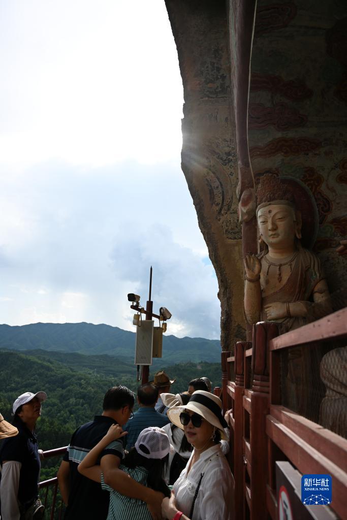 7月30日,游客在麥積山石窟參觀(guān)游覽。