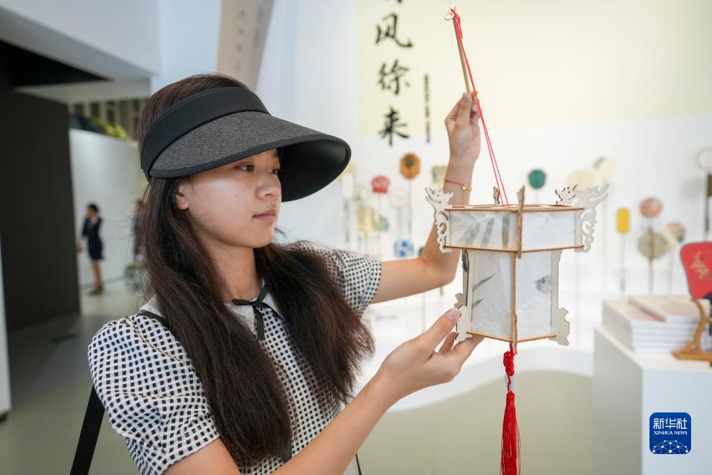 7月31日,游客在《畫(huà)游清明上河――故宮沉浸藝術(shù)展》的一個(gè)展廳內欣賞燈籠。