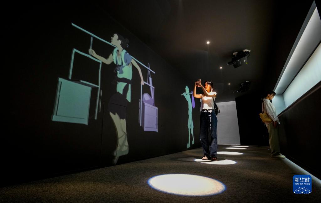 7月31日,兩名游客在《畫(huà)游清明上河――故宮沉浸藝術(shù)展》一個(gè)利用數字技術(shù)活化《清明上河圖》的展區參觀(guān)游覽。