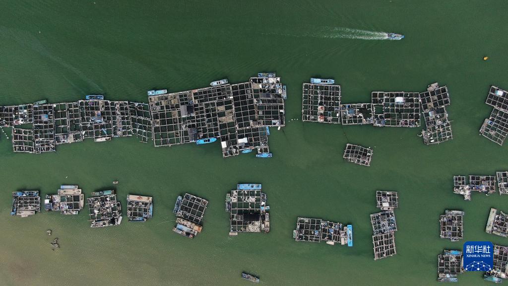 廣東省潮州市饒平縣柘林鎮的海上網(wǎng)箱(7月28日攝,無(wú)人機照片)。