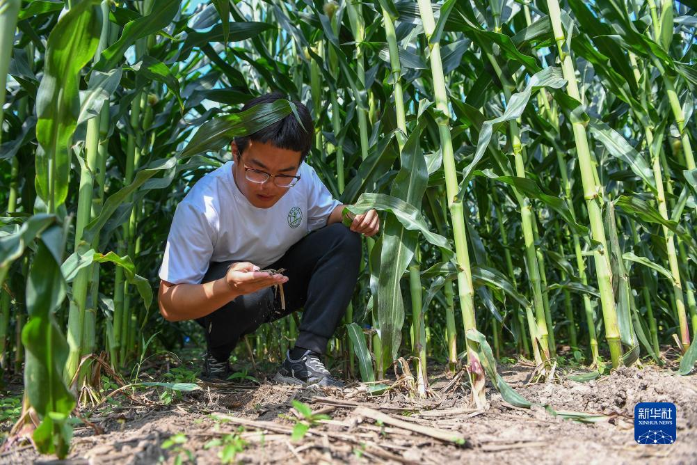 7月31日,在位于吉林省四平市梨樹(shù)縣的中國農業(yè)大學(xué)“科技小院”保護性耕作試驗田,在讀博士生沙野在查看秸稈覆蓋情況。