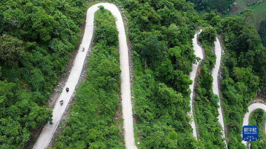 這是廣西那坡縣百省鄉那孟村各酬屯通往百南鄉的“龍拐路”(7月31日攝,無(wú)人機照片)。