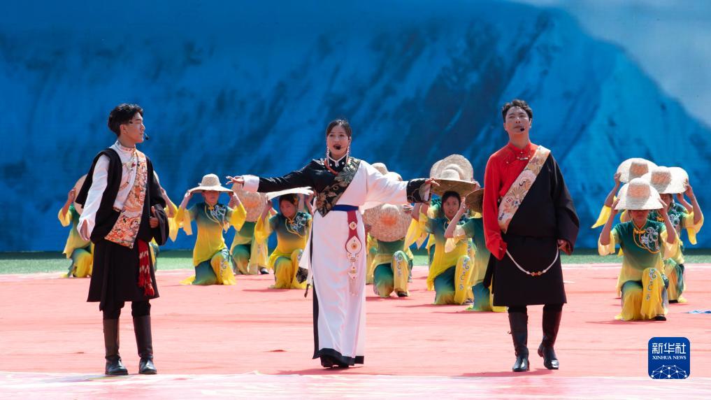 8月1日,當地群眾在海南藏族自治州成立70周年慶祝大會(huì )上表演節目。