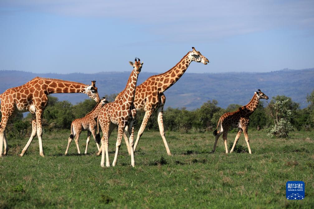 這是2022年5月13日在肯尼亞納庫魯湖國家公園拍攝的長(cháng)頸鹿。