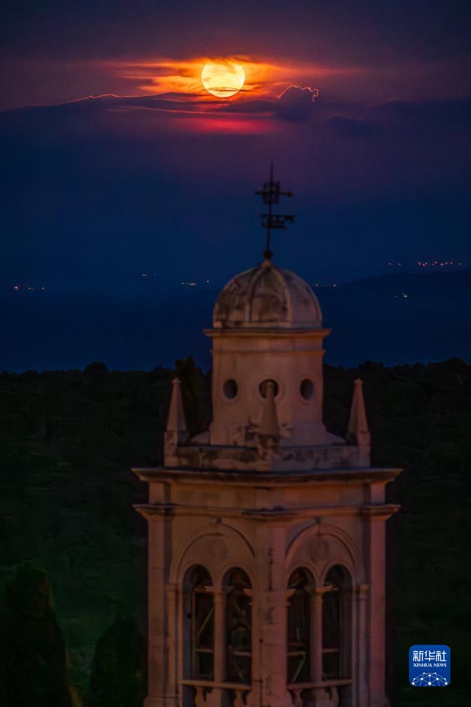 8月1日晚,一輪滿(mǎn)月現身克羅地亞布拉奇島上空。