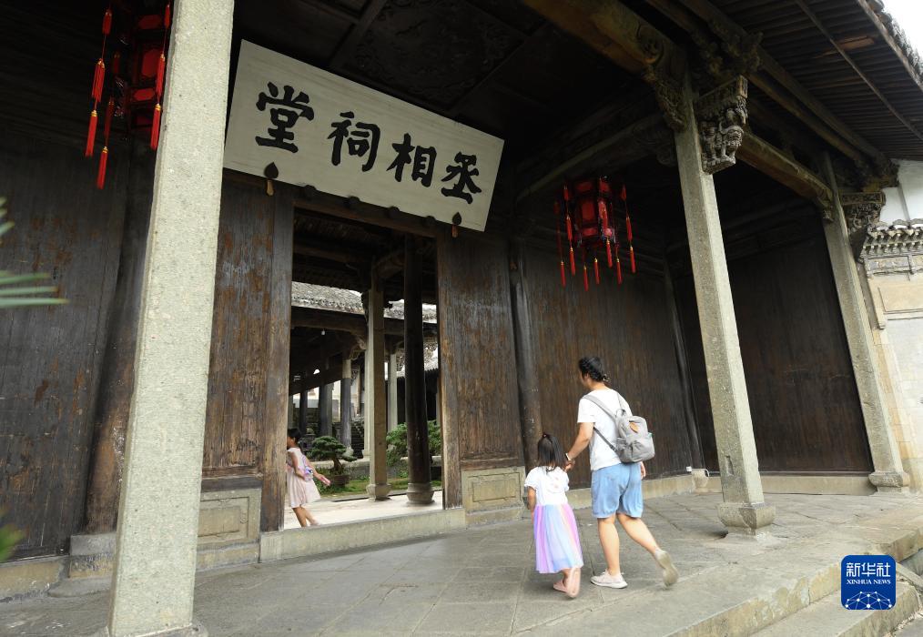 8月1日,游客在諸葛村丞相祠堂參觀(guān)游覽。