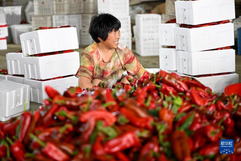 近日,安徽省蚌埠市五河縣朱頂鎮陳臺村的3000余畝辣椒迎來(lái)收獲季,村民們忙著(zhù)采摘、搬運、裝車(chē),一派喜人的豐收景象。近年來(lái),安徽省蚌埠市五河縣朱頂鎮積極調整農業(yè)產(chǎn)業(yè)結構,采取“合作社+農戶(hù)+市場(chǎng)”的模式,結合市場(chǎng)需求種植特色辣椒品種,帶動(dòng)當地農民增收致富。