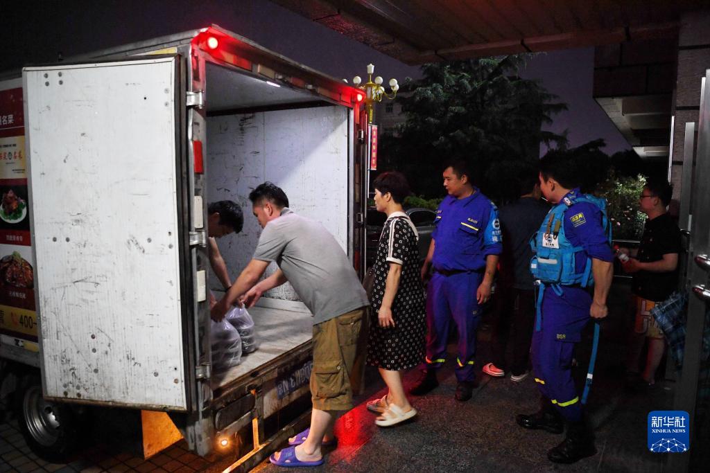 8月1日,河北省涿州市職教中心安置點(diǎn)的工作人員在運送飯菜,準備發(fā)放給安置群眾。