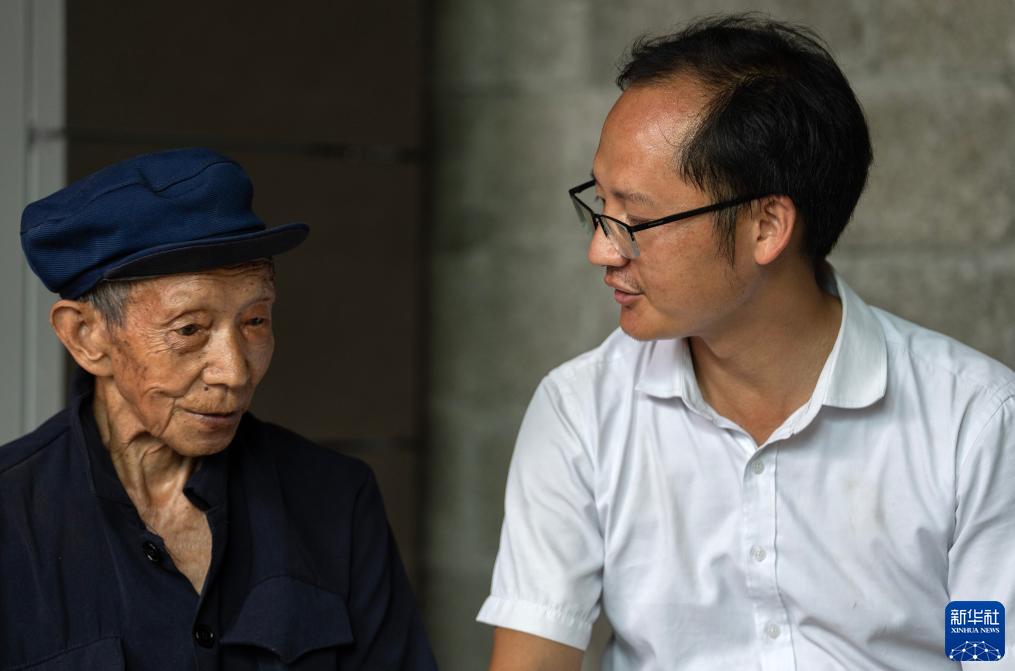 7月31日,吳建英與外公陶文勝交談。新華社記者費茂華攝
