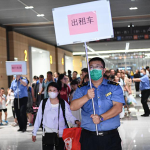 8月2日,北京豐臺站工作人員引導K396次列車(chē)旅客有序出站。