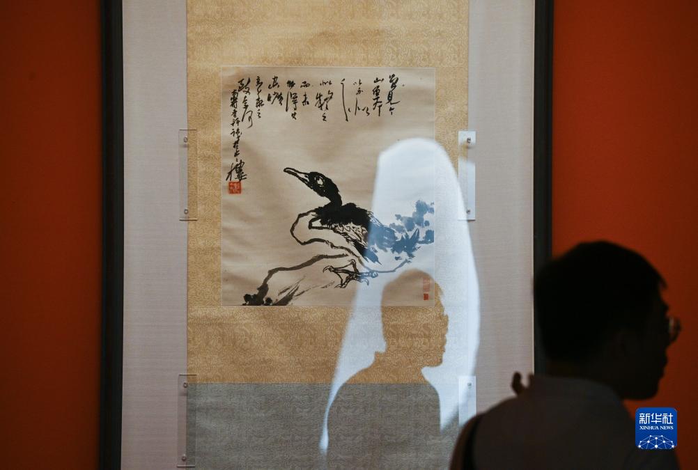 8月2日,參觀(guān)者在北京民生現代美術(shù)館欣賞潘天壽作品《墨鴨》。