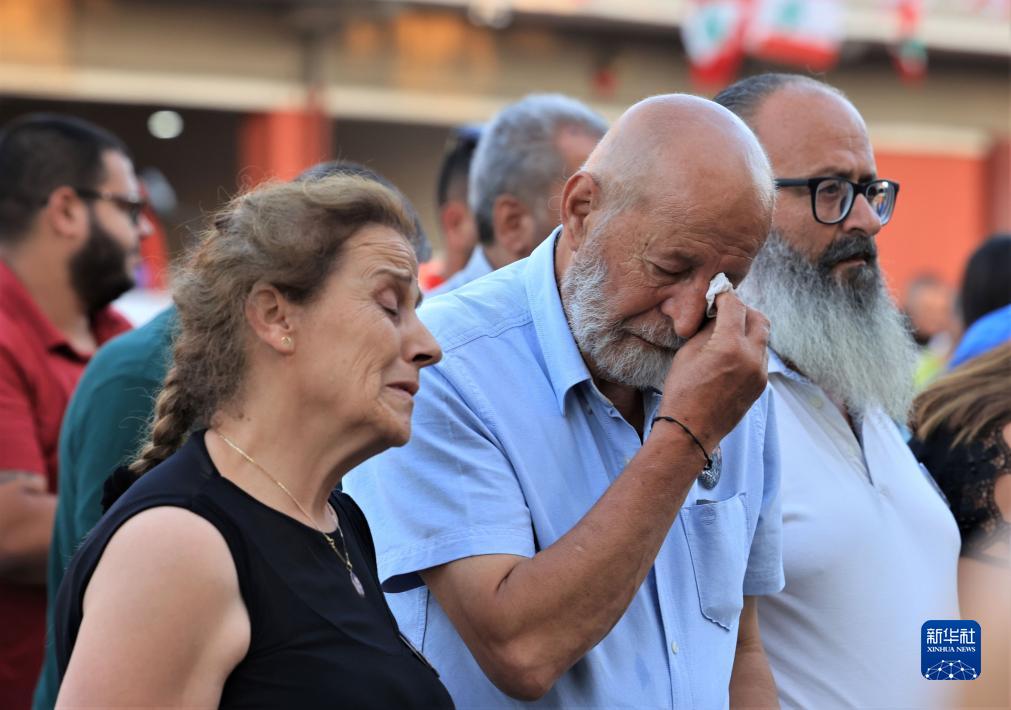 8月2日,在黎巴嫩貝魯特,人們參加貝魯特消防部門(mén)舉行的紀念活動(dòng),悼念貝魯特港口大爆炸中犧牲的消防人員。