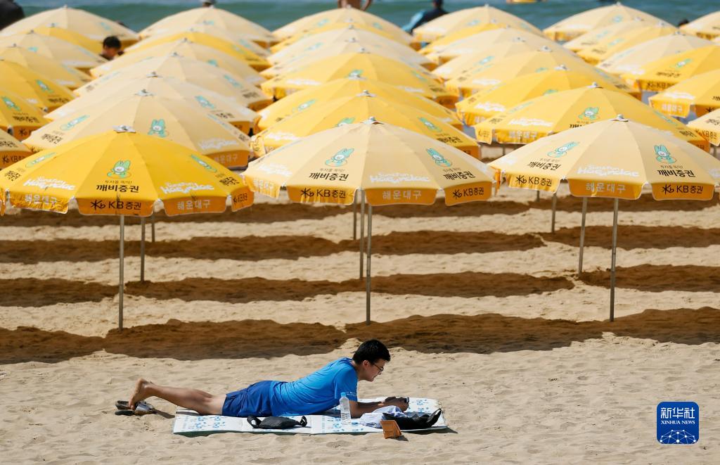 8月3日,市民在韓國釜山的海灘消暑。
